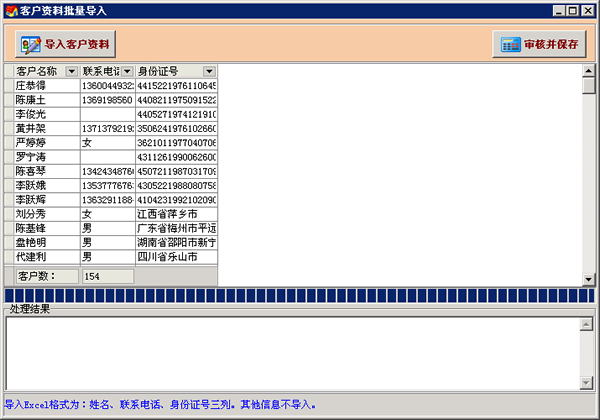 这里可以导入客户资料,导入的Excel样式如上,只能导入姓名、联系电话、证件号等等重要的信息,避免重复输入。
